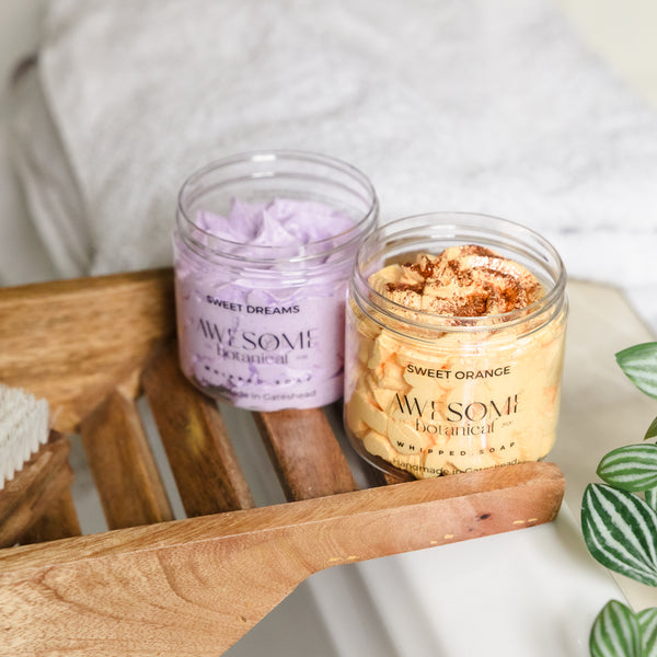 Start with a whipped soap, then body scrub, then moisturise with a body butter, and finish with targeted care where you need it most.